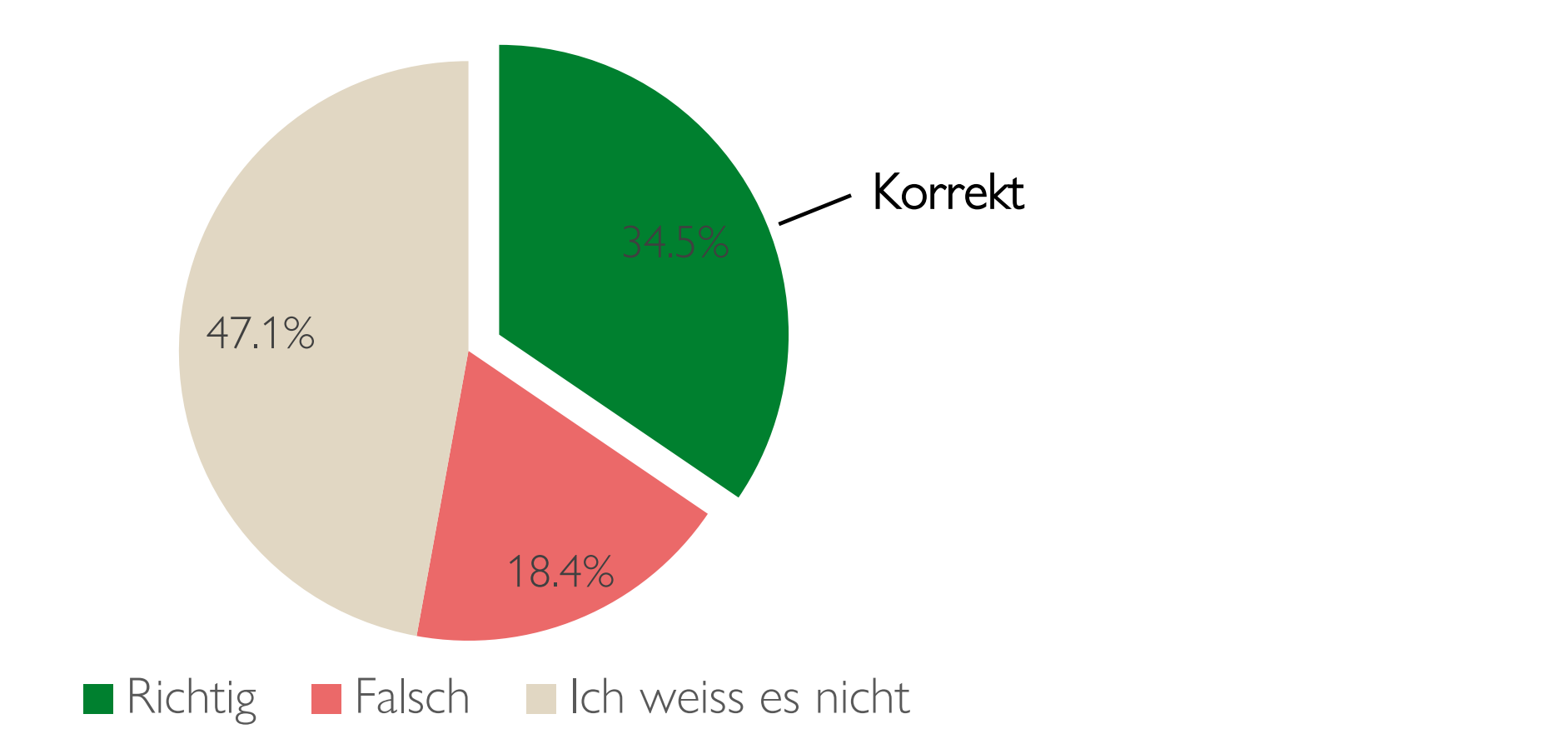 34,5% der Befragten stimmten der Aussage zu und lagen richtig. 18,4% lagen falsch. Und 47,1% wussten keine Antwort.
