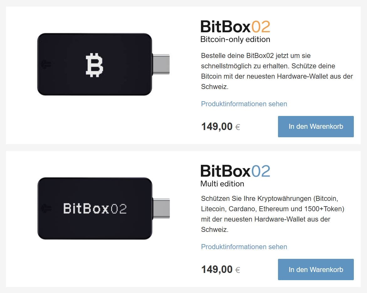 Aktuell hat das Unternehmen zwei Geräte im Angebot: Die BitBox02 Multi Edition und die BitBox02 Bitcoin-Only Edition.