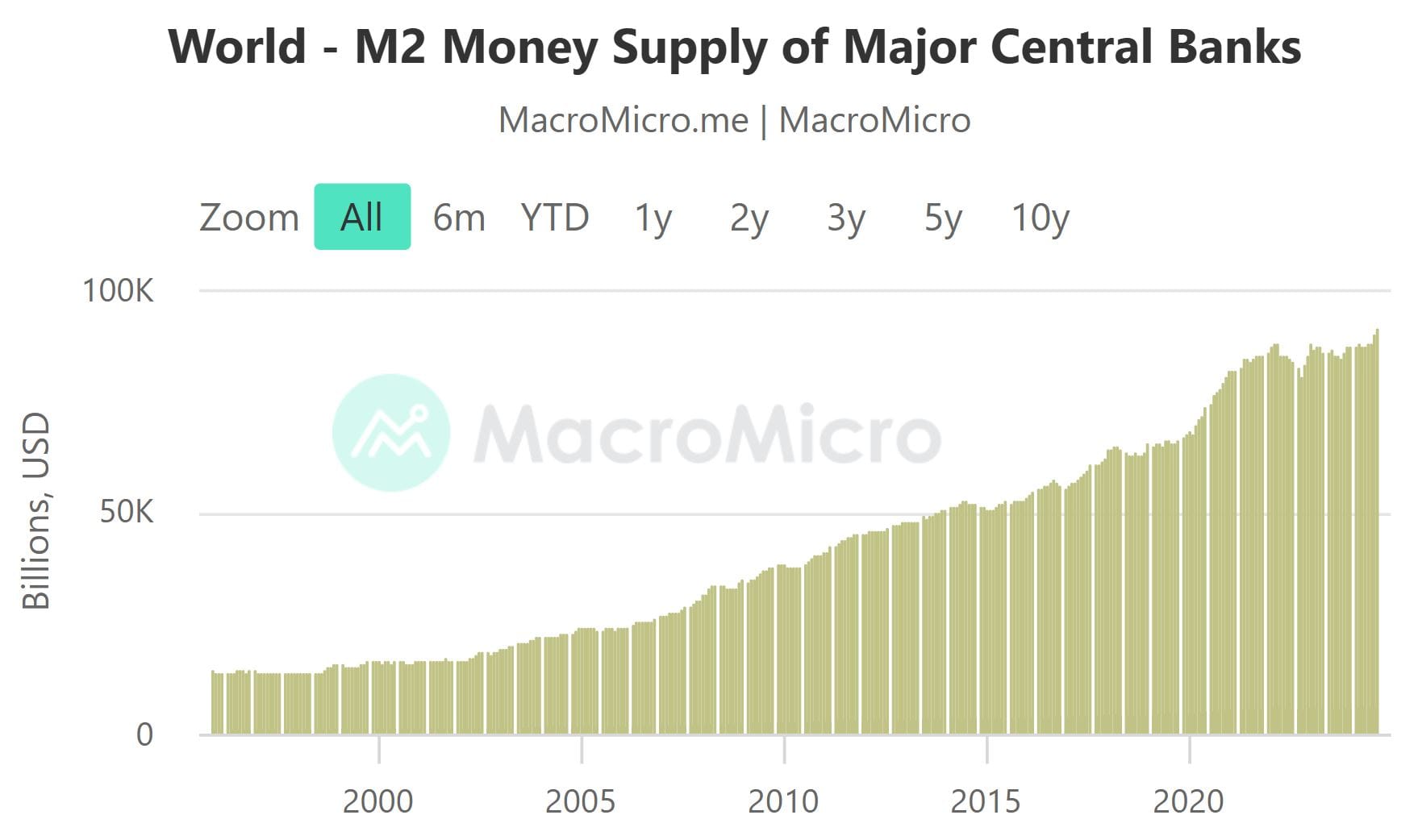 Wir halten fest: Die globale Geldmenge nimmt immer weiter zu. Dadurch entsteht Preisinflation und unser hart erarbeitetes Geld verliert kontinuierlich an Wert.