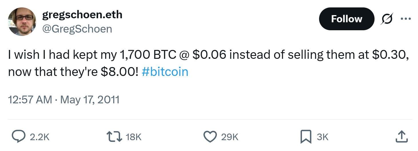 Genau das ist Greg Schoen passiert. Hätte er damals verstanden, was Bitcoin wirklich ist, bzw. sein kann, wäre er heute Multimillionär.