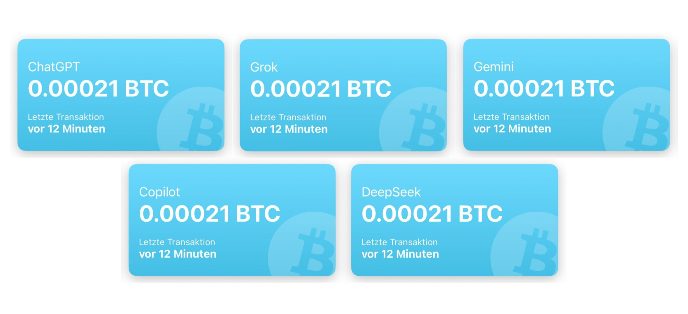Und nicht nur ChatGPT, auch Grok, Gemini, Copilot und DeepSeek haben die Schlüssel zu meinen Coins erhalten.