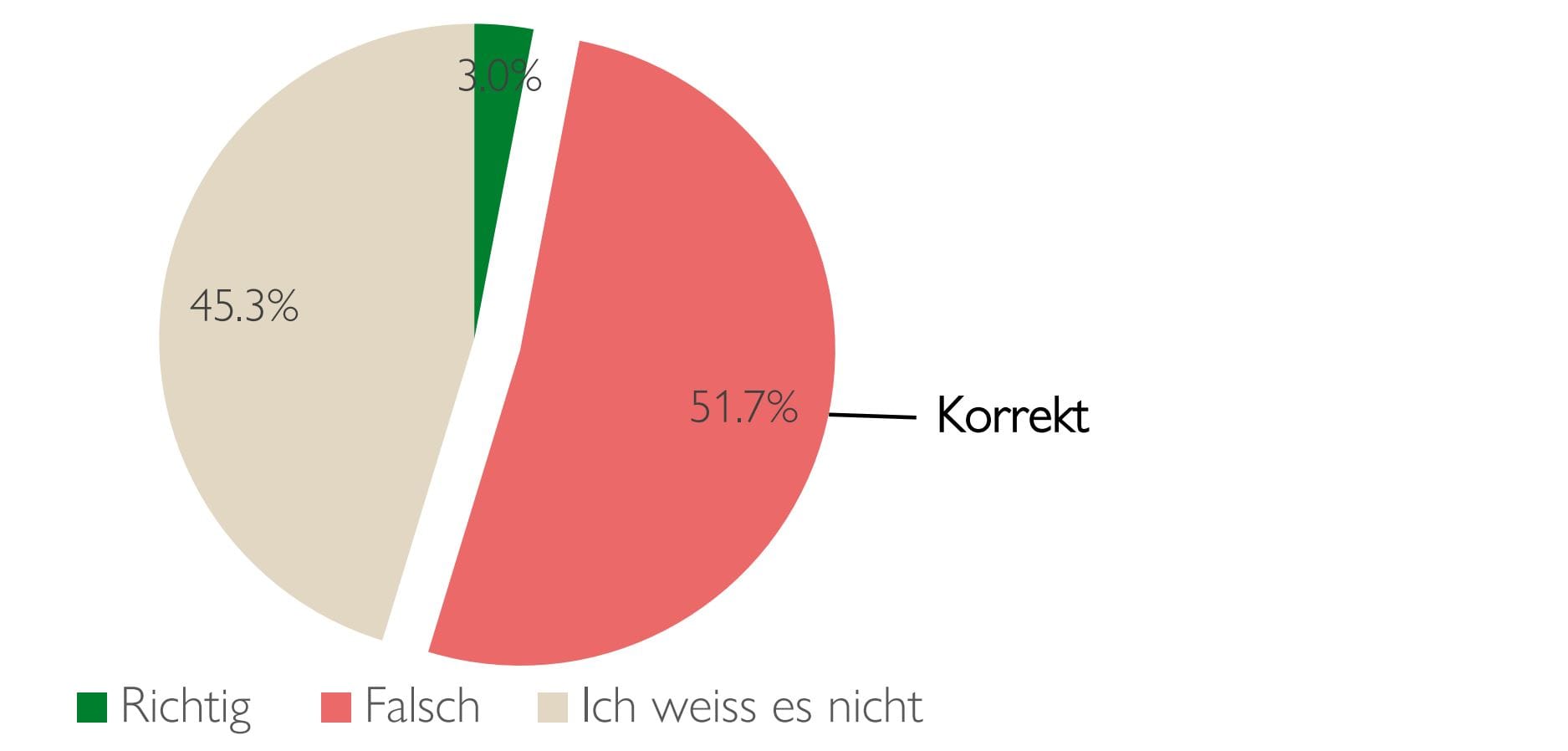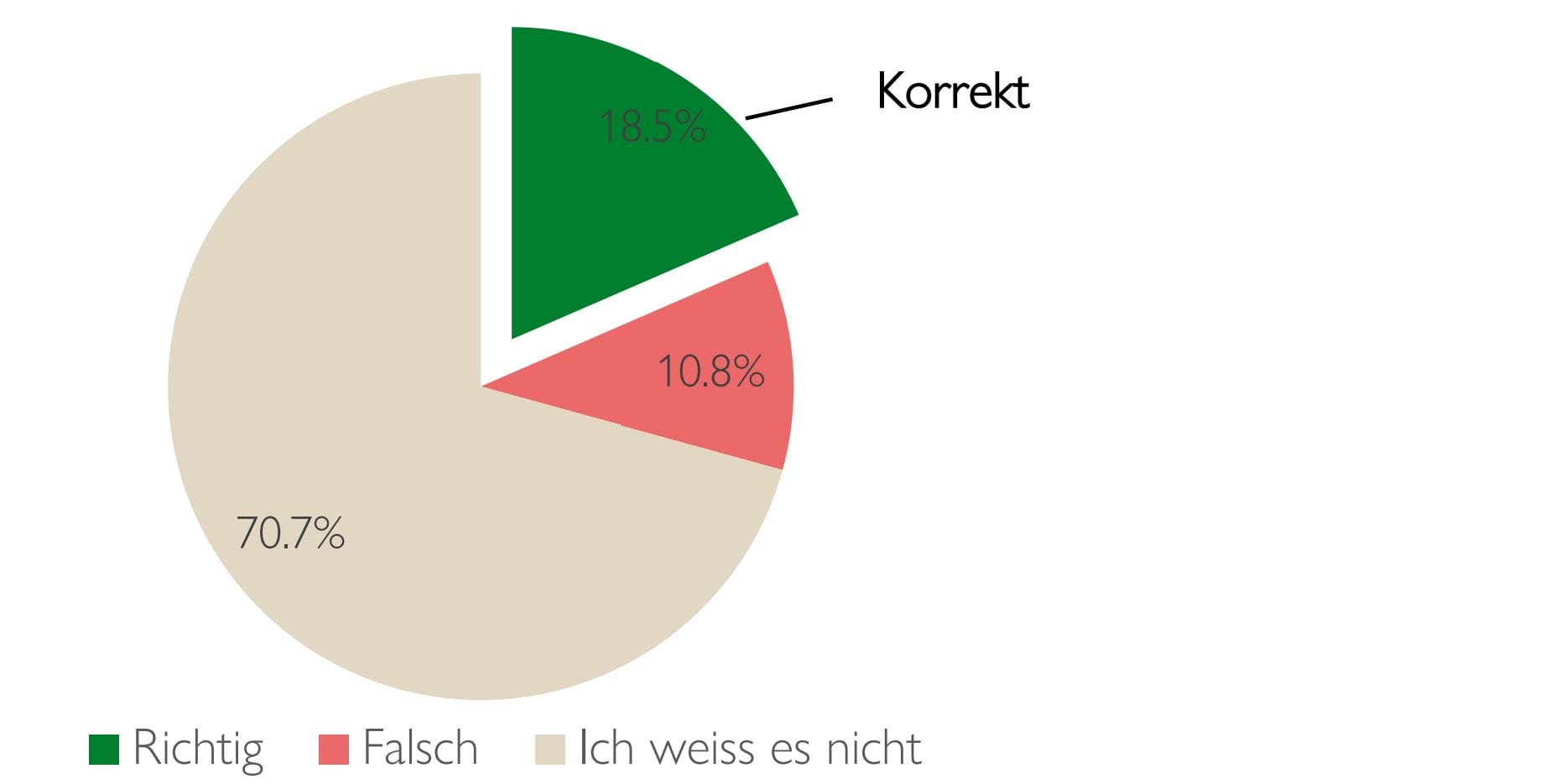 Nur 18,5% stimmten zu und antworteten korrekt. 10,8% irrten sich, indem sie "Falsch" angekreuzt haben. Und 70,7% hatten keine Antwort auf dieses Statement.
